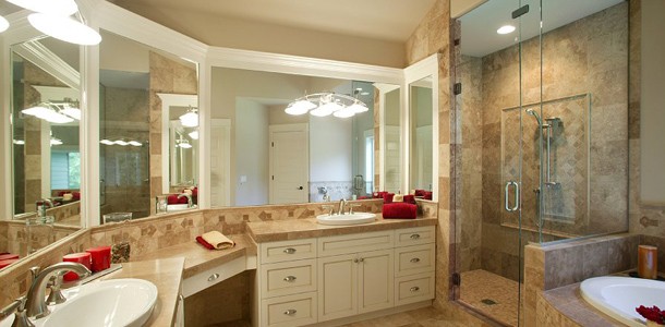 Heavy glass showers or frameless enclosures are distinguished by their lack of metal framing. They are striking and create an overall unobstructed view throughout the bath.