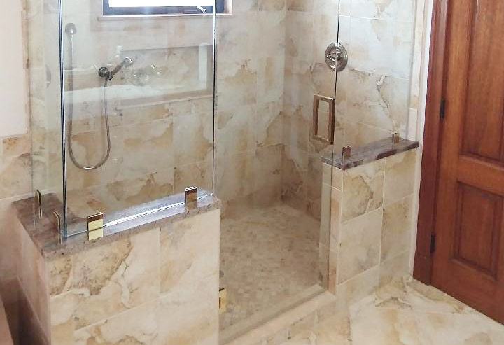 - Frameless shower enclosures, etched glass, and custom glass steam showers
