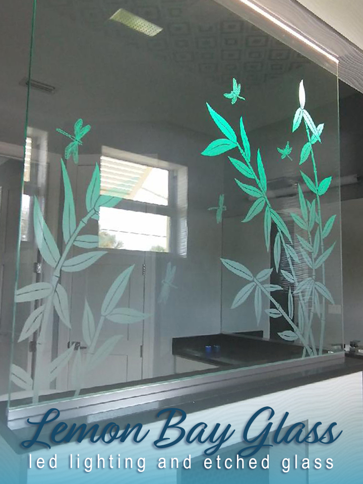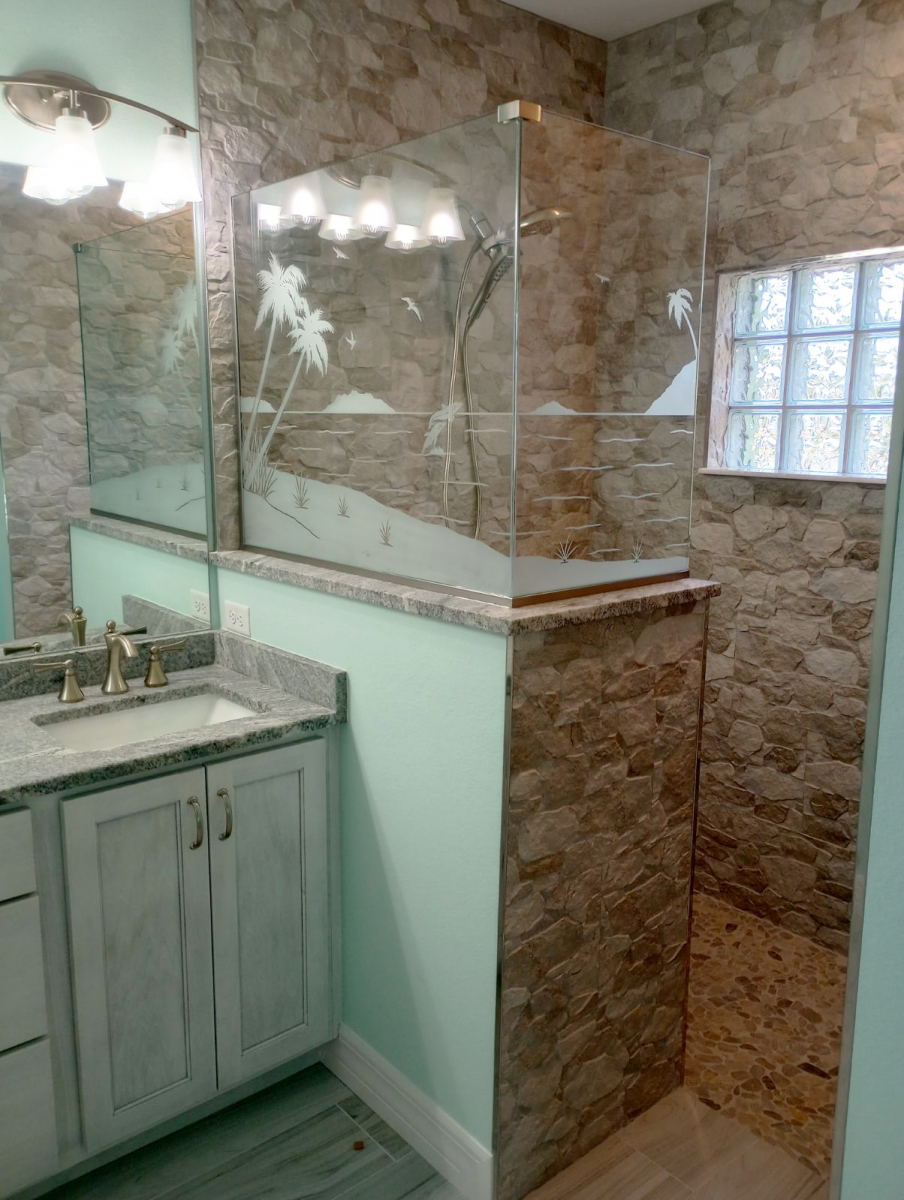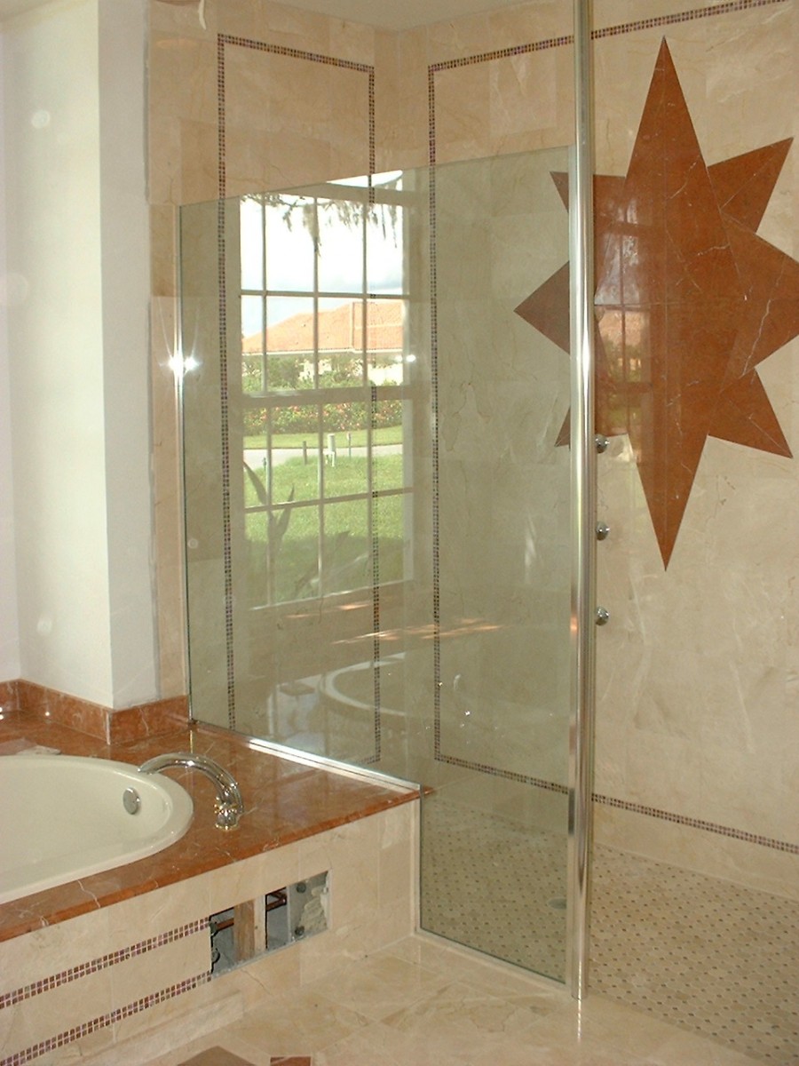 Many Florida home builders and designers request a stationary glass panel for their tubs and showers; no doors with walk-in ease. Creative flair and unique effects are displayed through the selection of glass. At Lemon Bay Glass glass panels are custom-cut and fabricated with a variety of glass clarities, glass colors, patterns, sizes, and thicknesses to choose from, creating one-of-a-kind shower enclosures. A bathroom’s ambiance is elevated with glass.