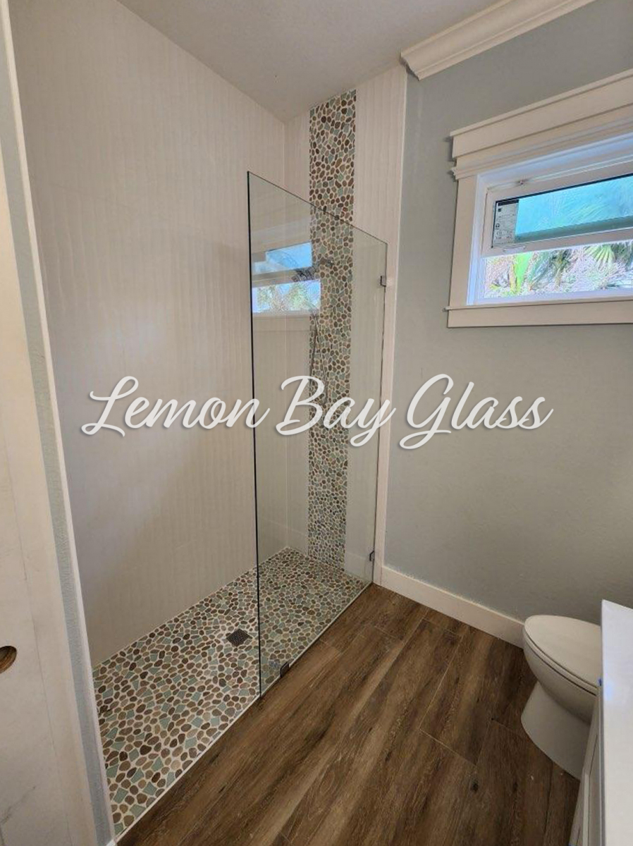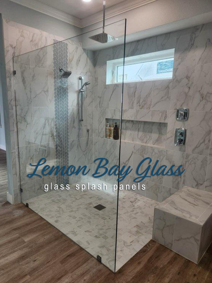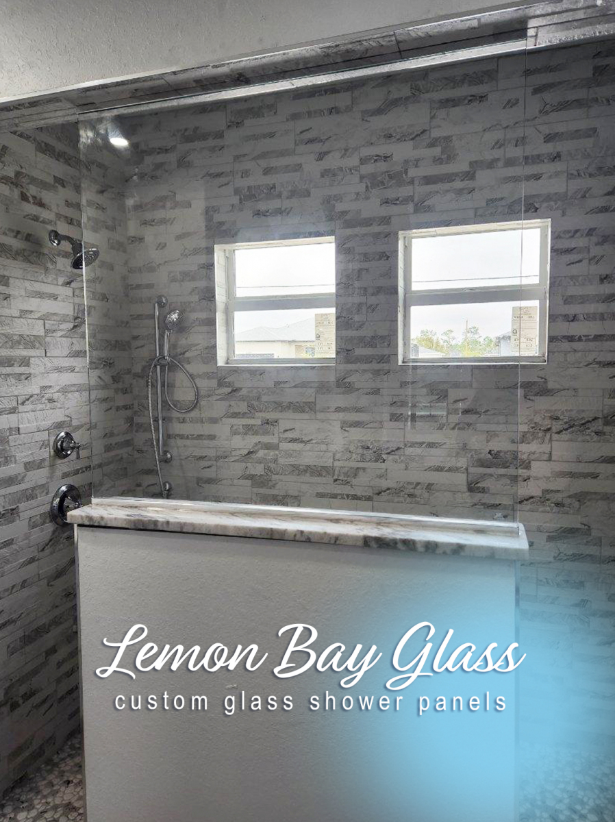 Sometimes all you need is a panel of glass. We have got you covered. View more information on Lemon Bay Glass options in custom-cut glass for the bath.